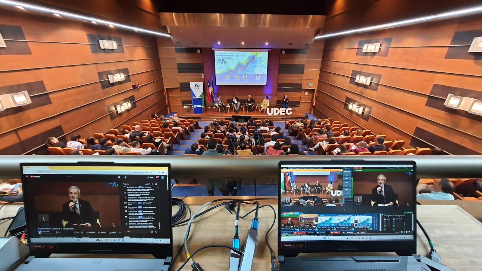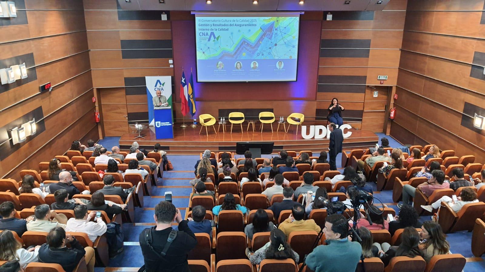 El jueves 27 de noviembre, la Comisión Nacional de Acreditación (CNA-Chile) llevó a cabo en el auditorio de UdeC Santiago —institución colaboradora y anfitriona— el III Conversatorio Cultura de la Calidad 2025, centrado en la Gestión y Resultados del Aseguramiento Interno de la Calidad.
