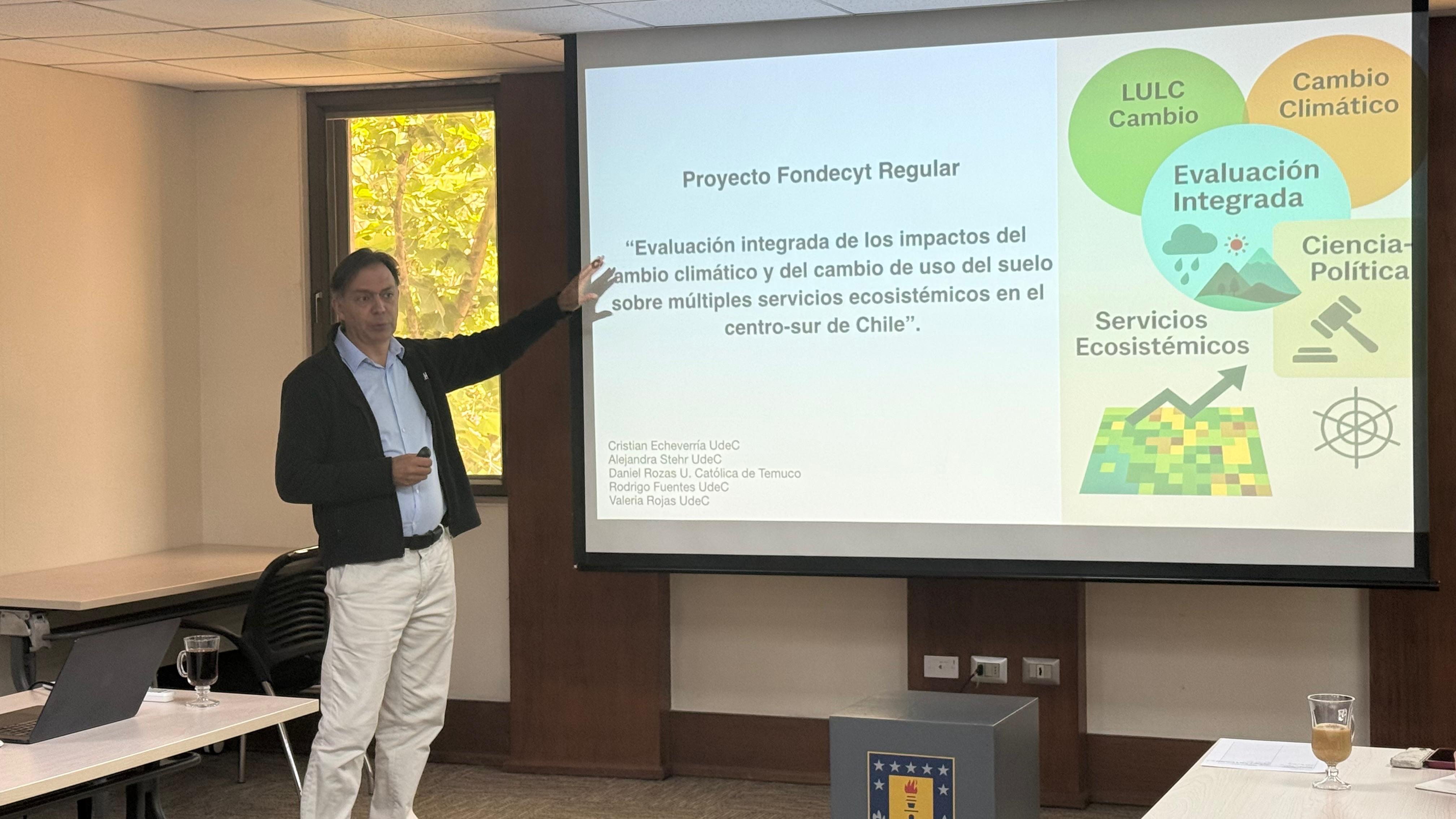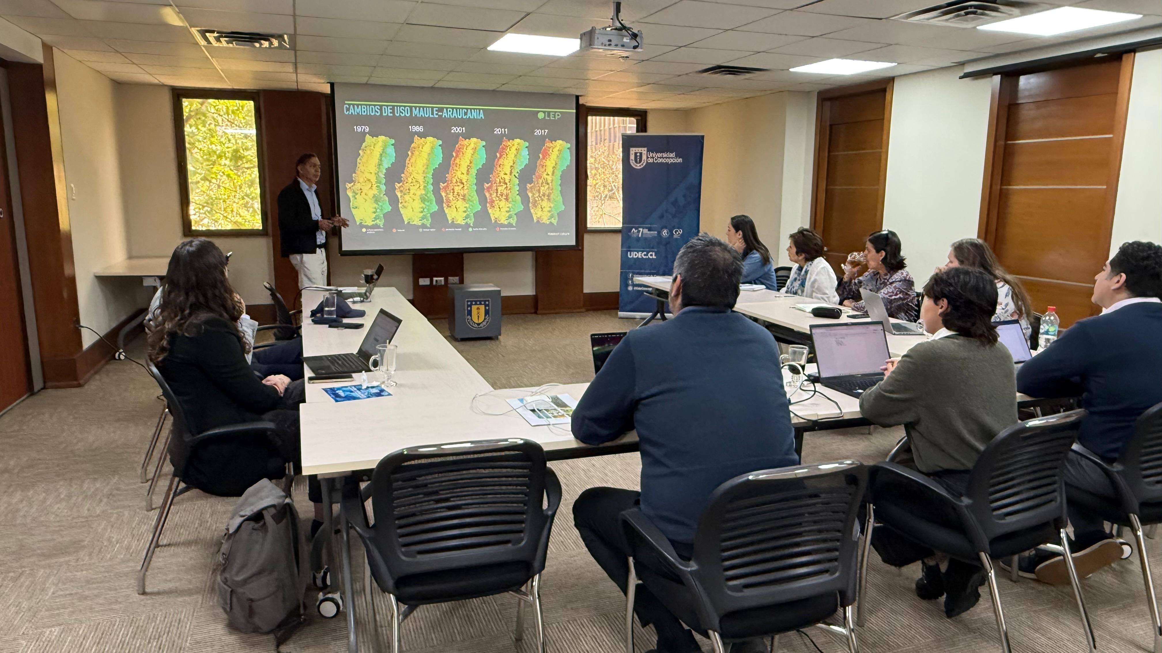 Este miércoles 29 de octubre se realizó en UdeC Santiago la jornada de trabajo “Condicionantes para la planificación territorial con énfasis en múltiples servicios ecosistémicos”, en el marco del proyecto Fondecyt N.º 1231230 “Integrated Assessment of the Impacts of Climate and Land Use Change on Multiple Ecosystem Services in South-central Chile”.