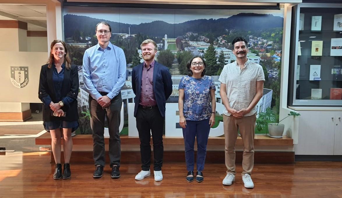 El viernes 27 de marzo se llevó a cabo una reunión de colaboración en las oficinas de UdeC Santiago, en el marco de las actividades de la Sociedad Max Planck Alemania. La instancia contó con la participación del representante para Latinoamérica de la Sociedad Max Planck de Alemania, Dr. Tobías Renghart, junto a líderes de Grupos Asociados Max Planck en Chile, incluyendo a los académicos de la Universidad de Concepción, Dr. Rodrigo Herrera Camus y Dr. Esteban Vöhringer-Martínez.